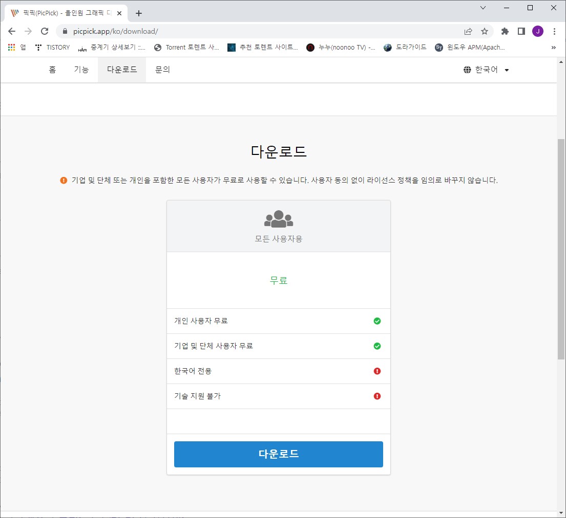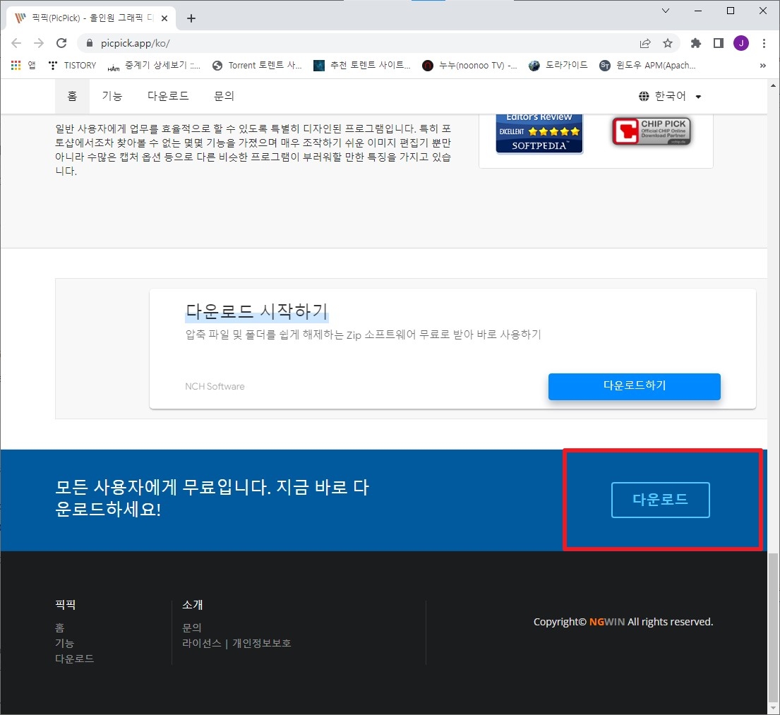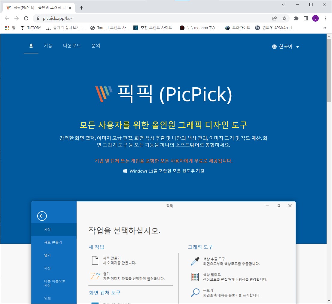 먼저 '픽픽' 프로그램은 아래의 링크에서 다운로드 받을 수 있습니다.