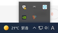 이제 설치가 다 끝났습니다. 정상적으로 설치가 다 끝나면 우측 하단부 트레이에 숨겨진 아이콘을 확인하면 다음 같은 아이콘을 확인할 수 있습니다.